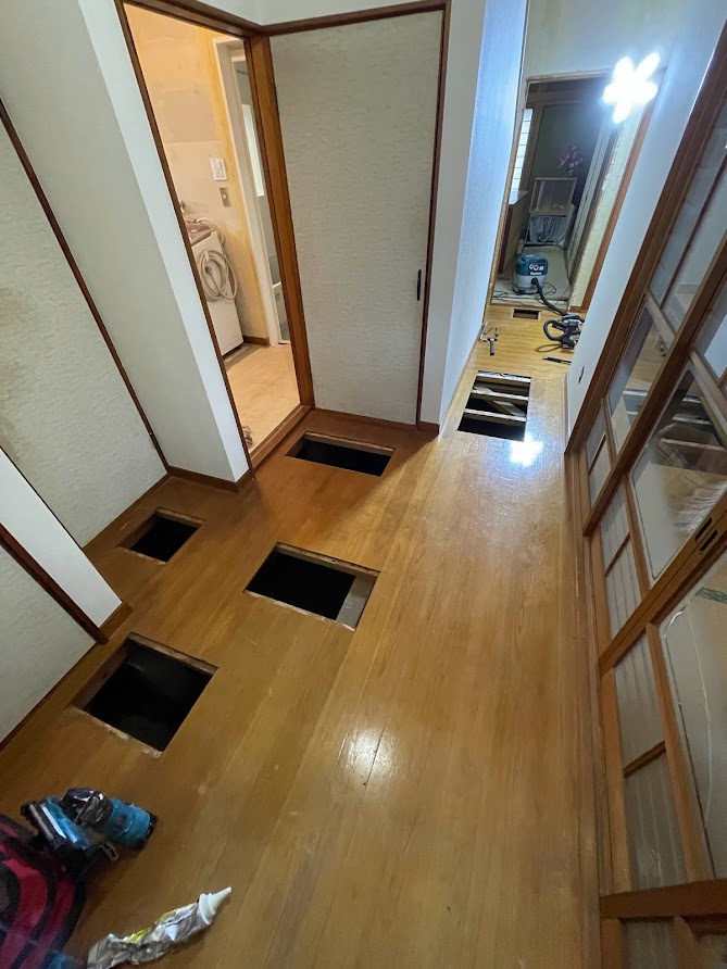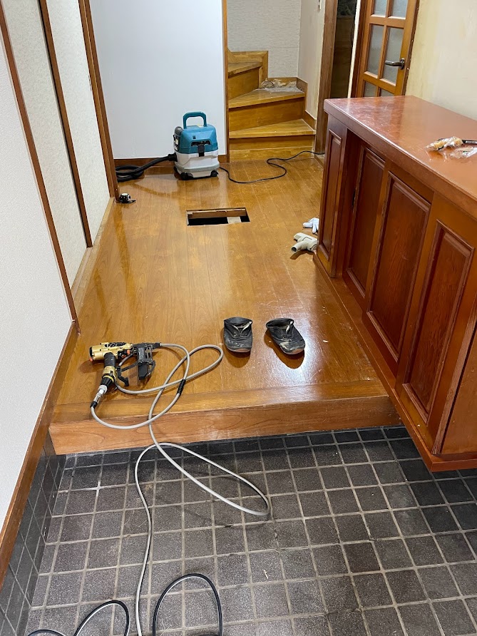 フローリング 上張り工事 2022年10月19日 最終更新日時 : 2026年2月17日 tanakakoumutentest 施工日記 玄関床貼り工事 前 廊下 床貼り前 床貼り後 床貼り後 玄関、廊下のフローリング上張り工事を行いました。 既存の床で危なそうな箇所はフローリングを切り抜き同じ厚みのベニヤをはり補強を行ってからフローリングを張りました。 [elementor-template id="237"]