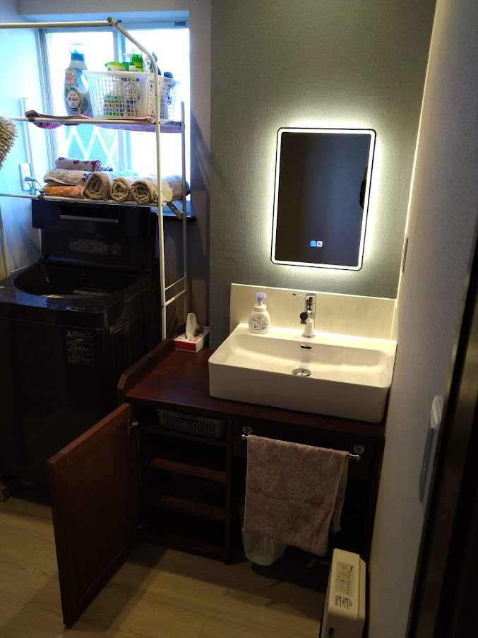 昨年、自宅の洗面台を手作りしてから要望されていた棚を取り付けました。