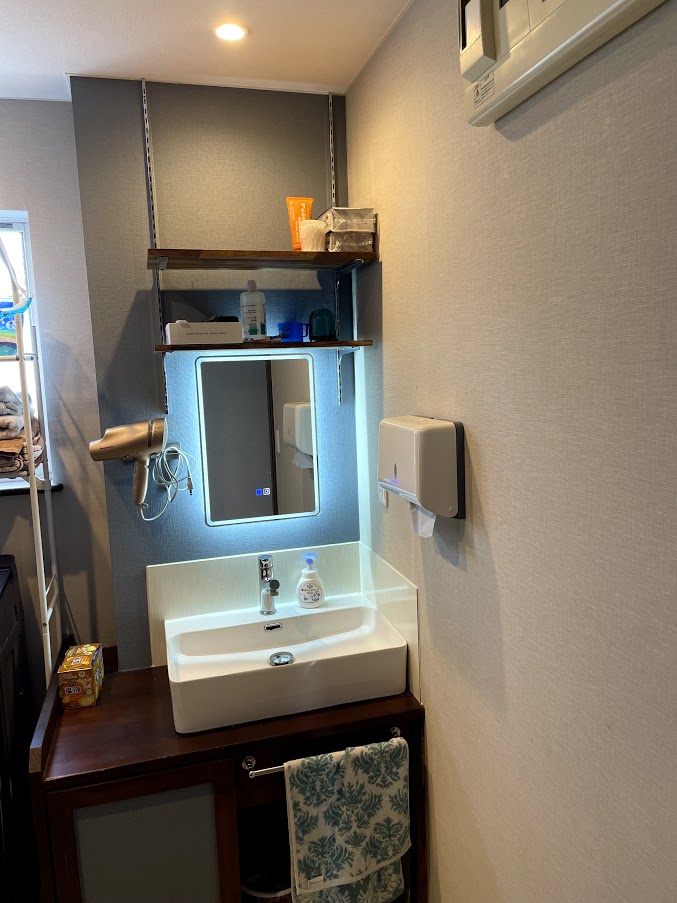 一緒にドライヤー掛け、ペーパーホルダーも設置しました。