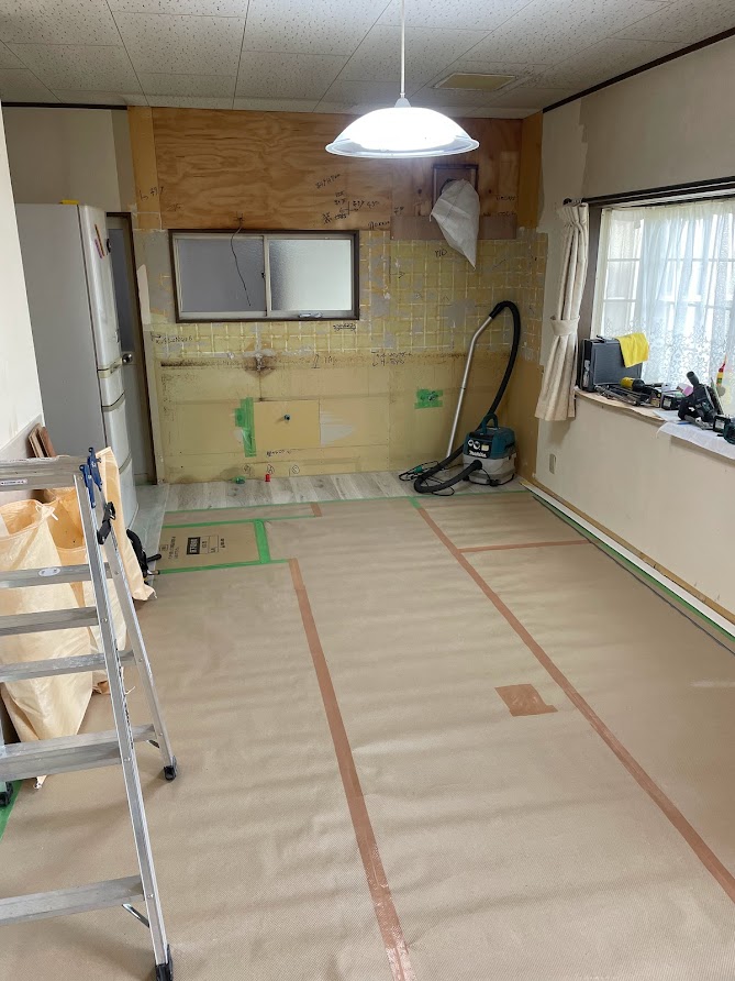 古河市にて、キッチンの入れ替え工事、フローリング上張り工事、クロスの張替え工事を行いました。